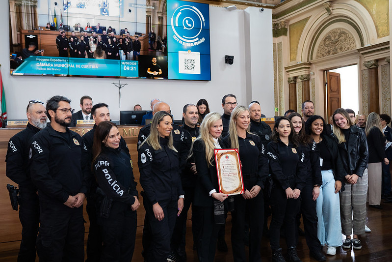 “A DHPP consolidou-se como unidade de referência no Estado do Paraná, tanto pela excelência nas investigações de sua competência quanto pela promoção de cursos de capacitação”, destacou Guzella. O diploma foi entregue à delegada titular da DHPP, Camila Cecconello. A homenagem também foi acompanhada por Thiago Ferreira Filgueiras, Melina Schneider Bastos, José Carlos Gonçalves Dias, Rafael Pocrifka Schultz, Patrícia Mayrhofer Sargi, Marcio Mendes, Bruno Rodrigues dos Santos Amaral, Ricardo Alekssander Colprani, Rodrigo da Silva Kozievitch, Sandromar Ribeiro Borges, Camila Boscardin Navarini, Leticia de Oliveira de Camargo, Dainer Tussolini Carneiro, Eros do Rocio Pereira dos Santos, Maria Luiza da Silva Santos e Nei Marques Bonfim Junior (077.00460.2025).