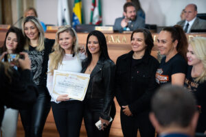 Na última quarta-feira (15), na sessão plenária da Câmara Municipal de Curitiba (CMC), a vereadora Delegada Tathiana Guzella (União) entregou Votos de Congratulações e Aplausos ao Centro de Operações Policiais Especiais (COPE). A parlamentar destacou que o Cope é “um órgão de excelência da Polícia Civil”, cujo trabalho “muitas vezes é invisível”, referindo-se às operações silenciosas e de alto risco realizados pela unidade. Como exemplo, ela relembrou ação recente em Bocaiúva do Sul, na Região Metropolitana de Curitiba, onde um homem, depois