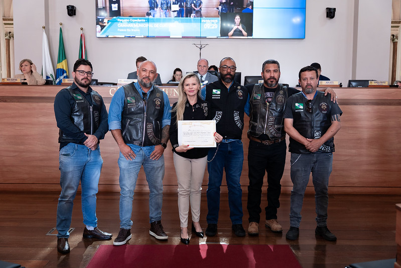 Nesta última segunda-feira (29), a vereadora Delegada Tathiana Guzella (União) prestou homenagem ao Motoclube Bode Velho, no plenário da Câmara Municipal de Curitiba (CMC). Guzella disse que o grupo fomenta a cultura motociclística, há 32 anos, por meio de valores como amizade, solidariedade e fraternidade, com a participação, de forma ativa, em ações sociais, culturais e comunitárias.